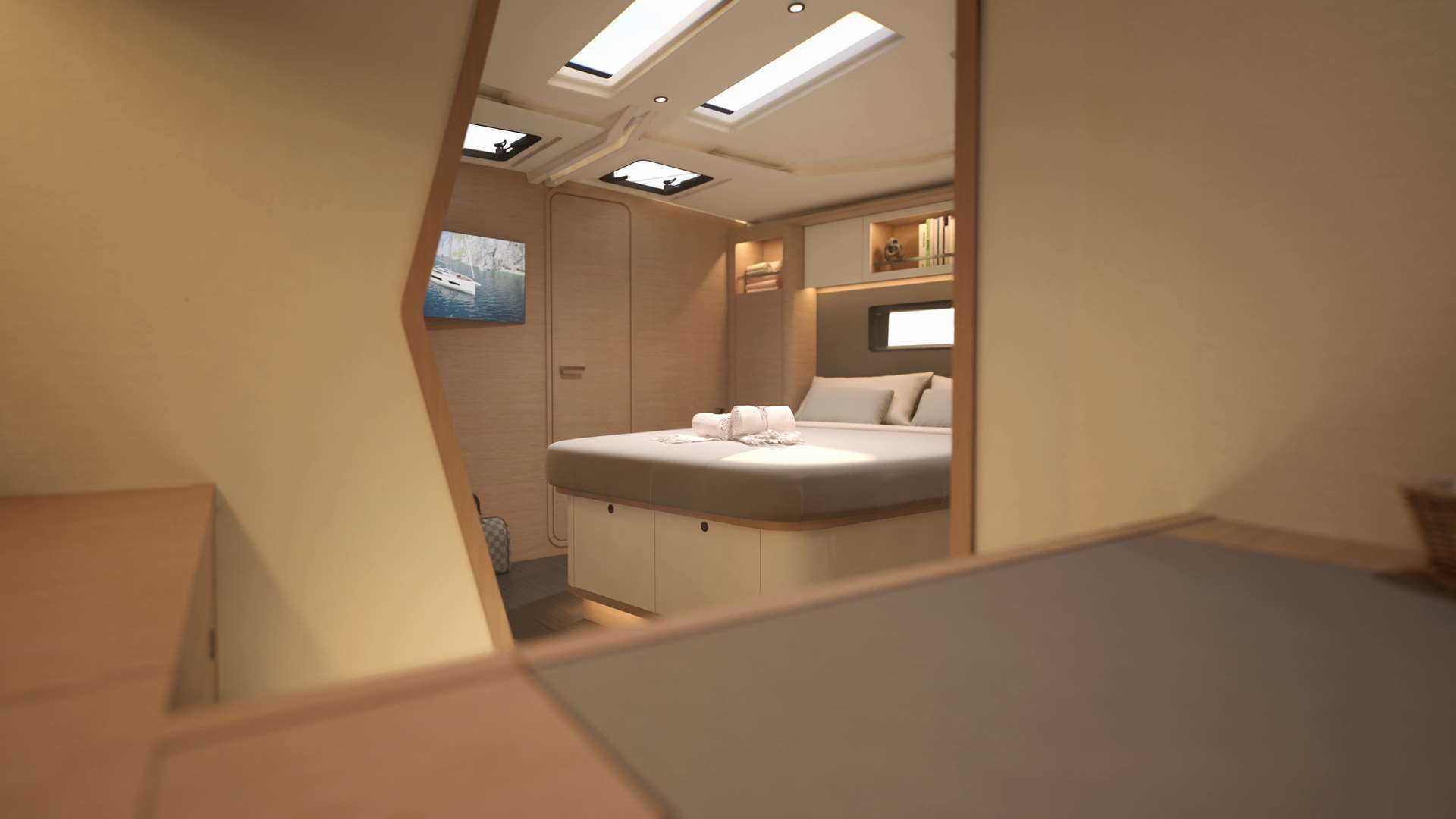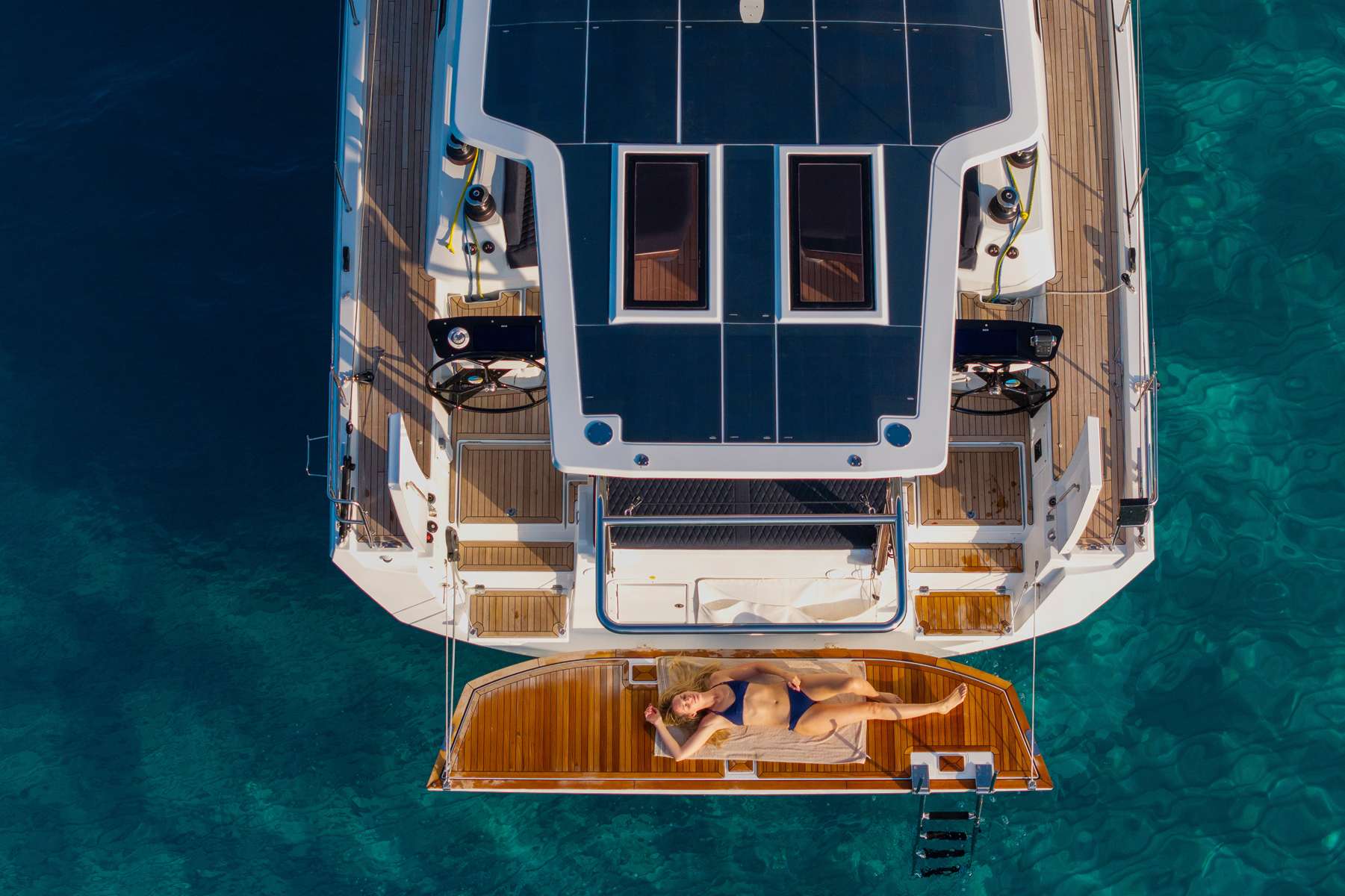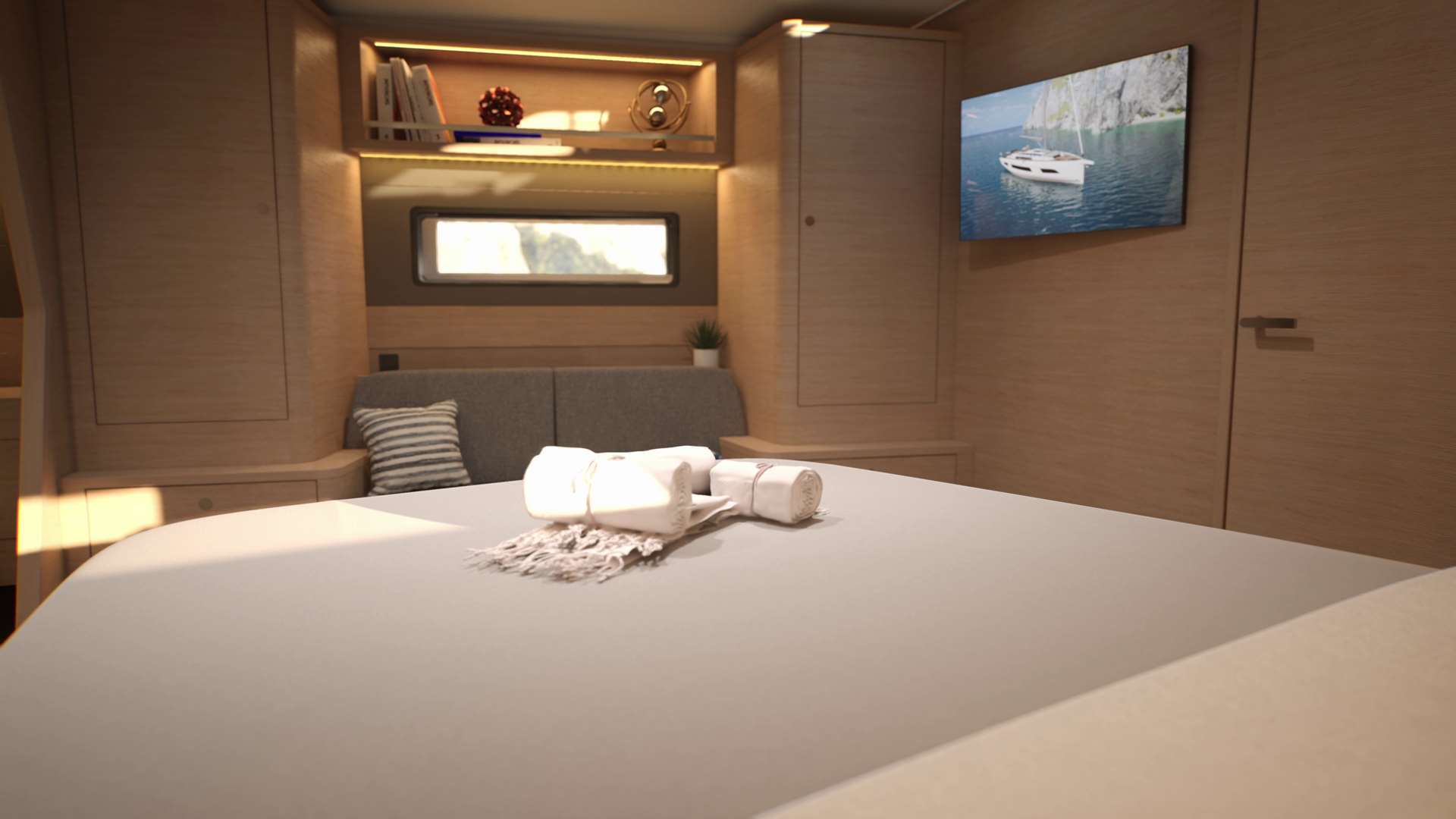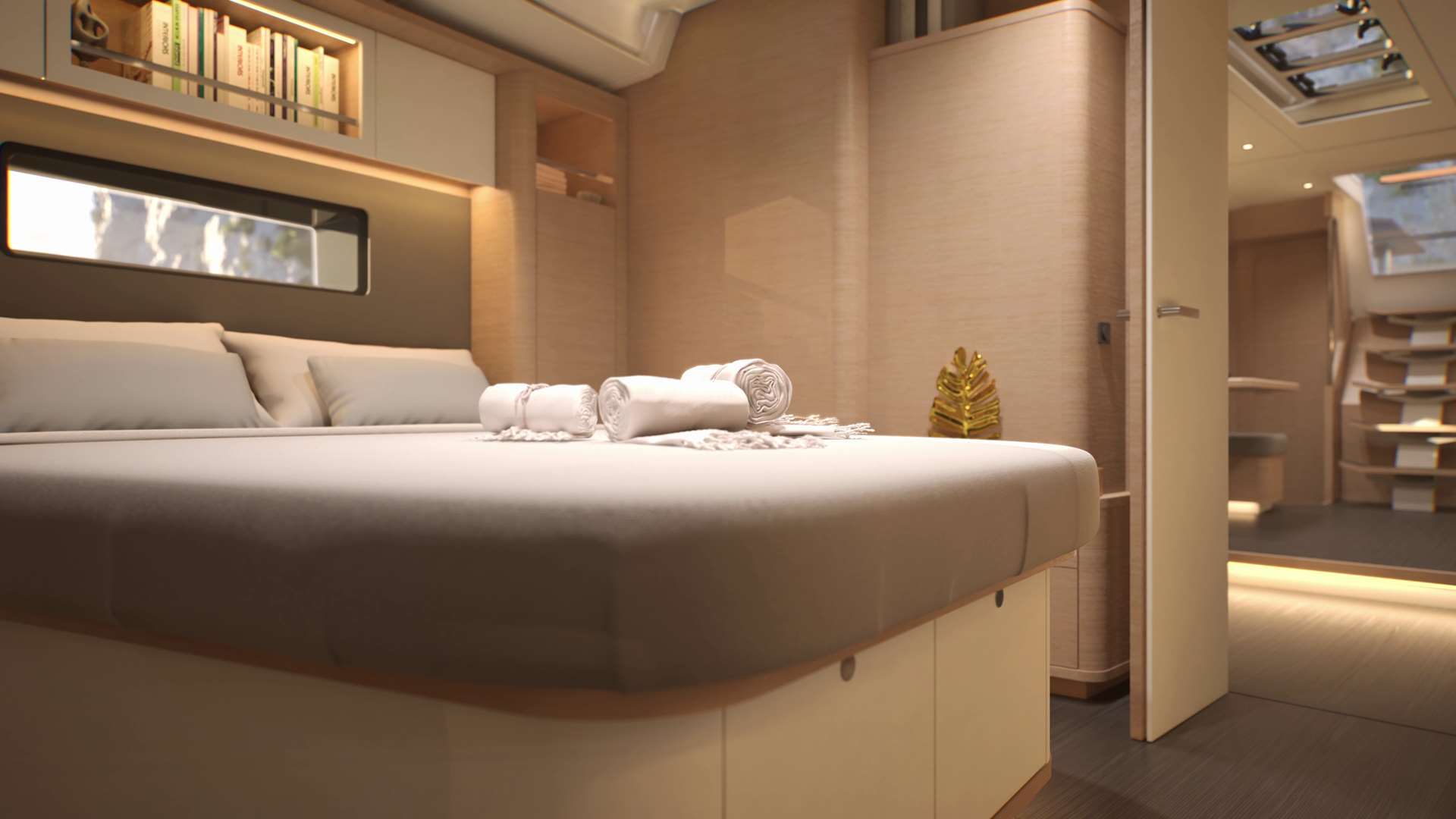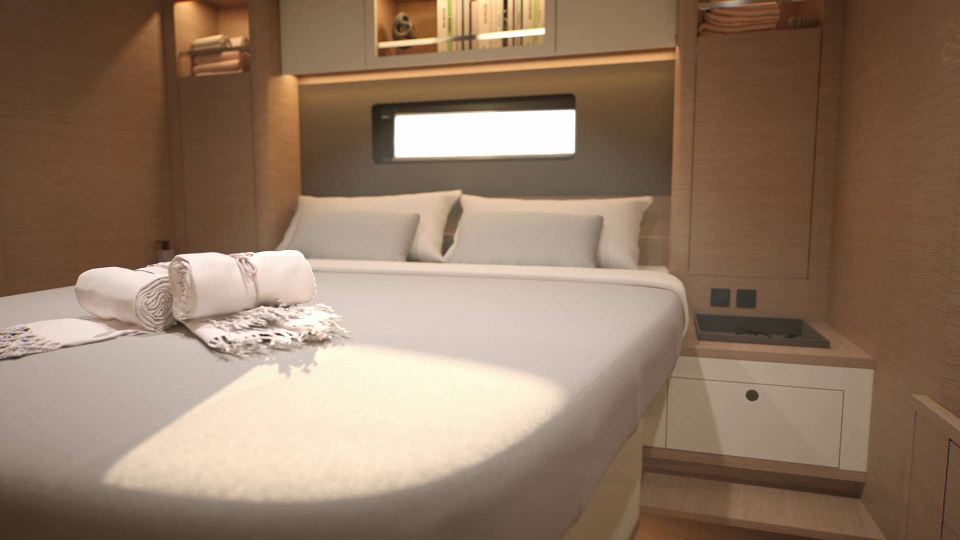Un accent particulier a été mis sur la qualité de vie à l’extérieur avec des espaces complètement repensés pour vivre pleinement ses désirs d’escapade au grand air. Les intérieurs, eux aussi, ont été pensés pour une connexion totale avec les éléments. Les grands vitrages permettent une vue à 360° sur la mer et le ciel, où que l’on soit dans le voilier. Chaque pièce reçoit une douce et chaleureuse lumière qui rend agréables les déplacements et la vie à l’intérieur.